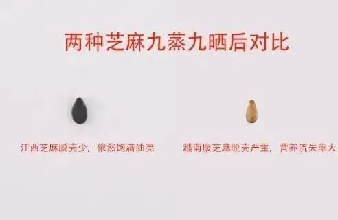 对比一下,江西黑芝麻个头饱满油亮,脱壳率少,营养保留完整,留给人体吸收的营养更足。