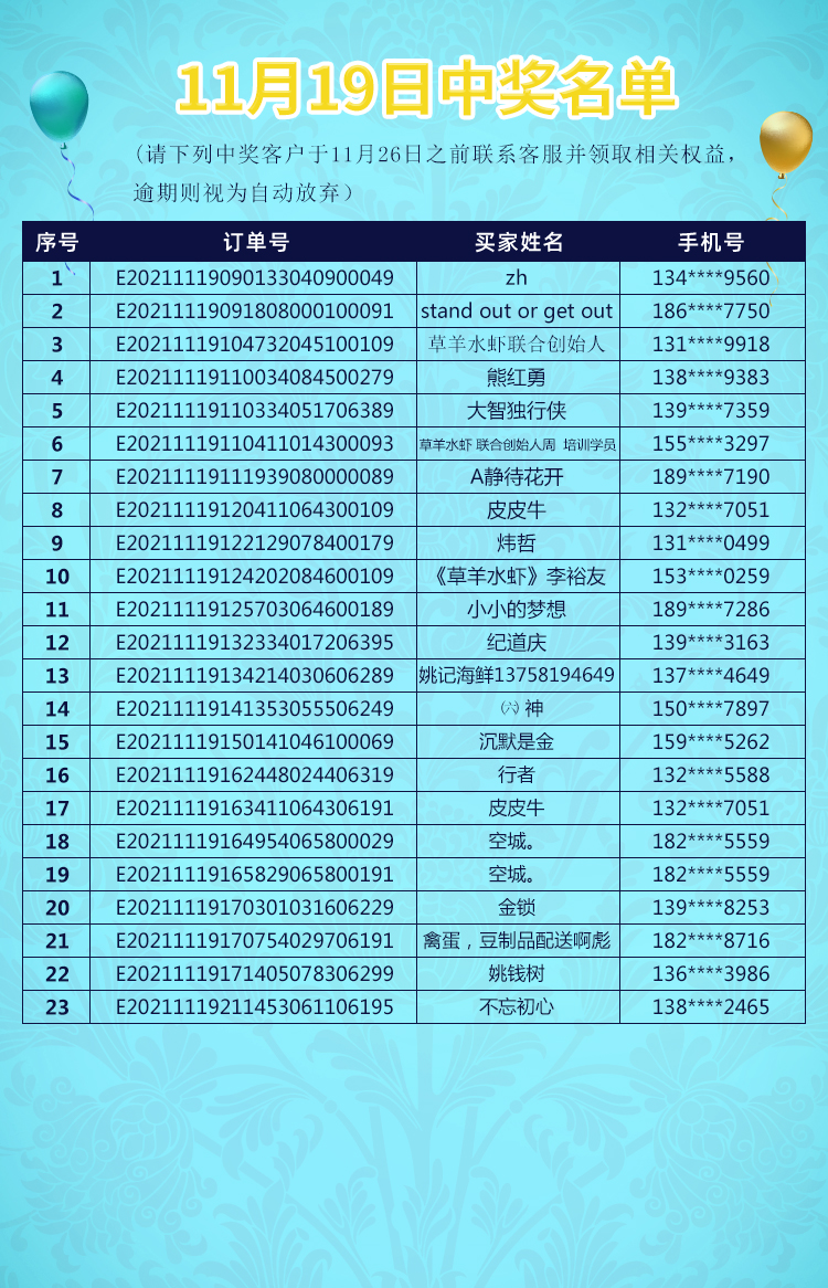 11月19日中奖客户名单