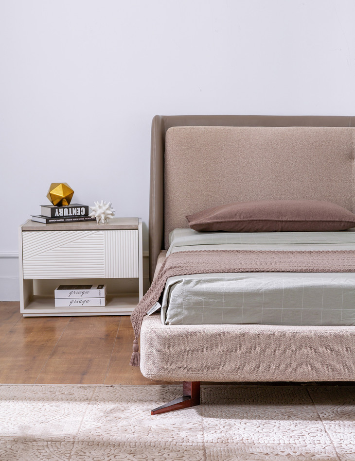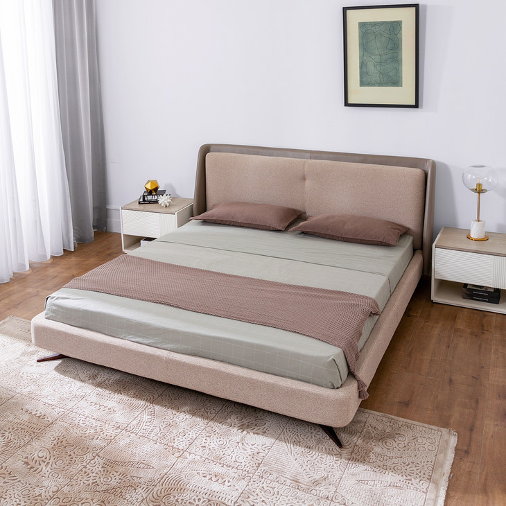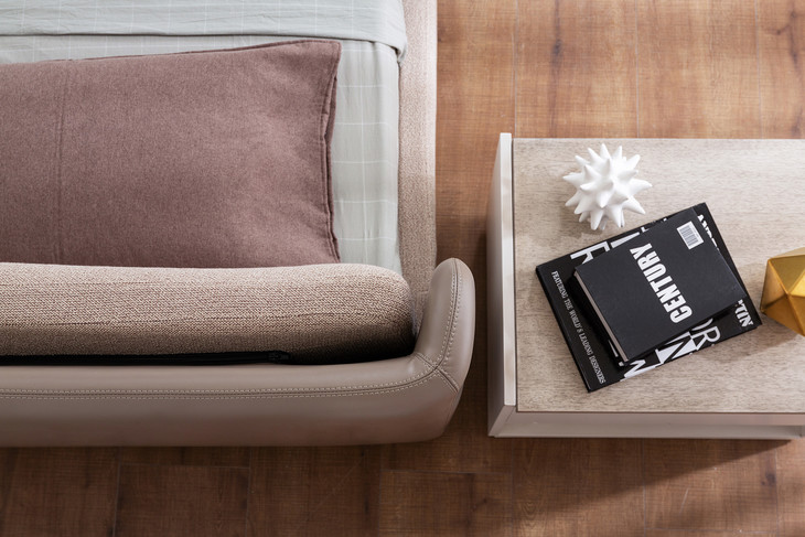想要卧室不一样,一张好看且舒适的床必不可少。Lan床有着十分耐看的极简流畅造型,皮布结合的拼色设计打破常规,中性卡其色皮质加上温柔自然的布艺面料,丰富空间层次感。靠背填充柔和弹软,恰到好处的舒适,打造质朴简约的满分卧室氛围。