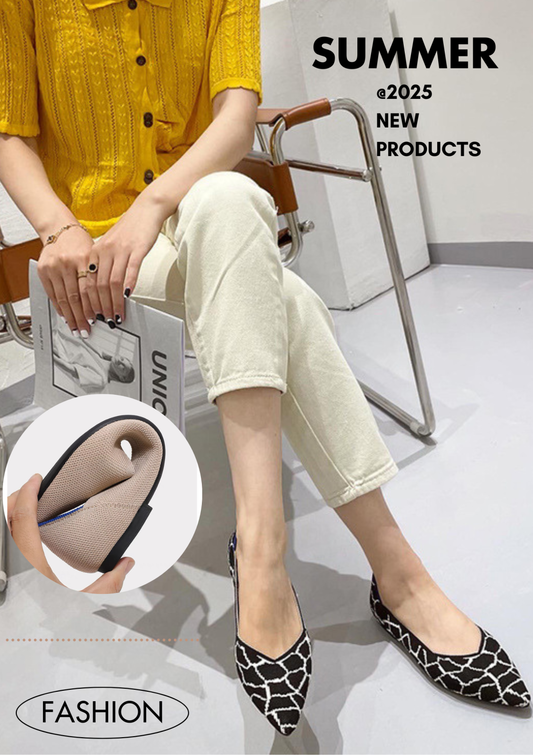 小尖头平底设计,露出雪白的脚背,视觉上更显纤细。