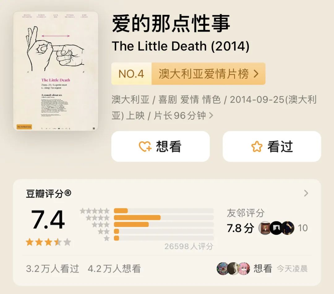 首先给大家推荐一部电影,叫《爱的那点性事》。这是一部关于爱情、性欲、性癖好关系的轻喜剧,还挺有意思的。