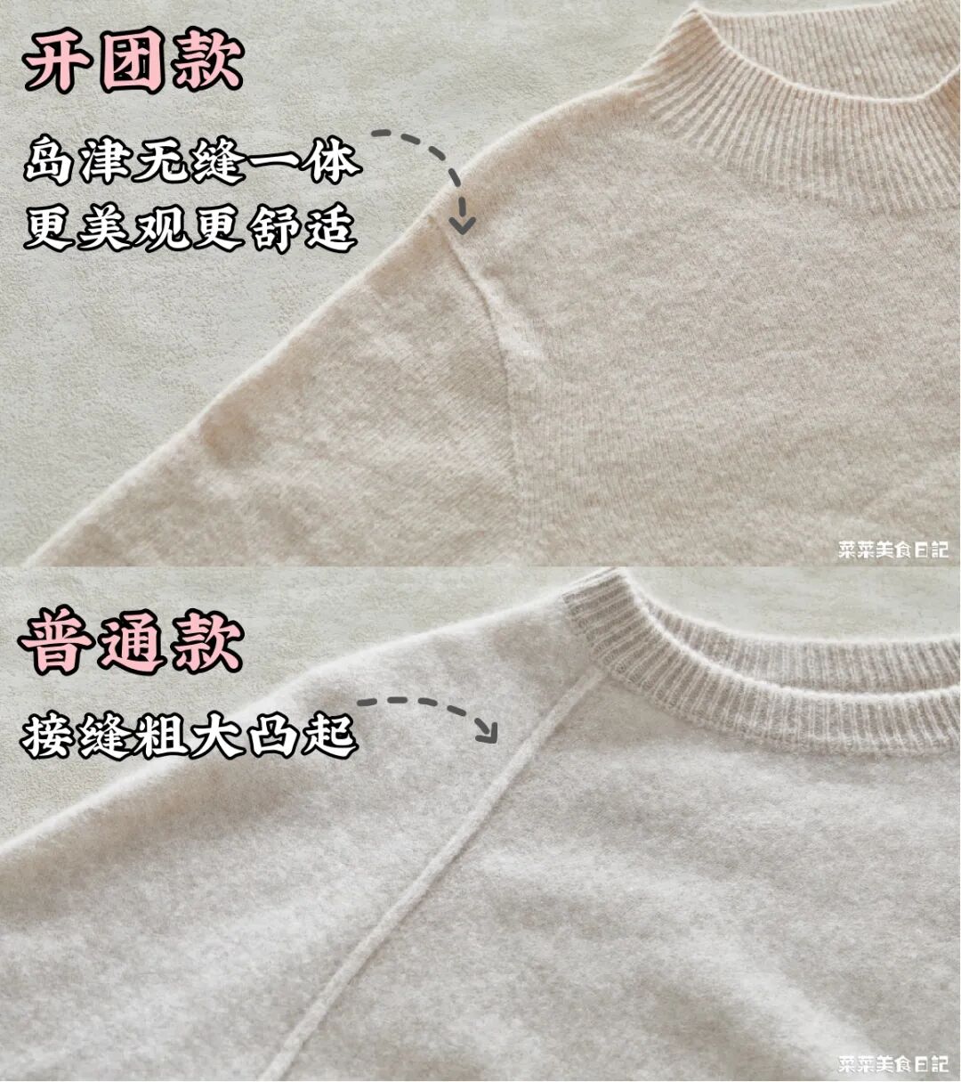 懂行的朋友都知道,这种岛津无缝一体成衣的纯羊毛衫,开工就按分钟来算的,成本比普通羊毛衫更贵。