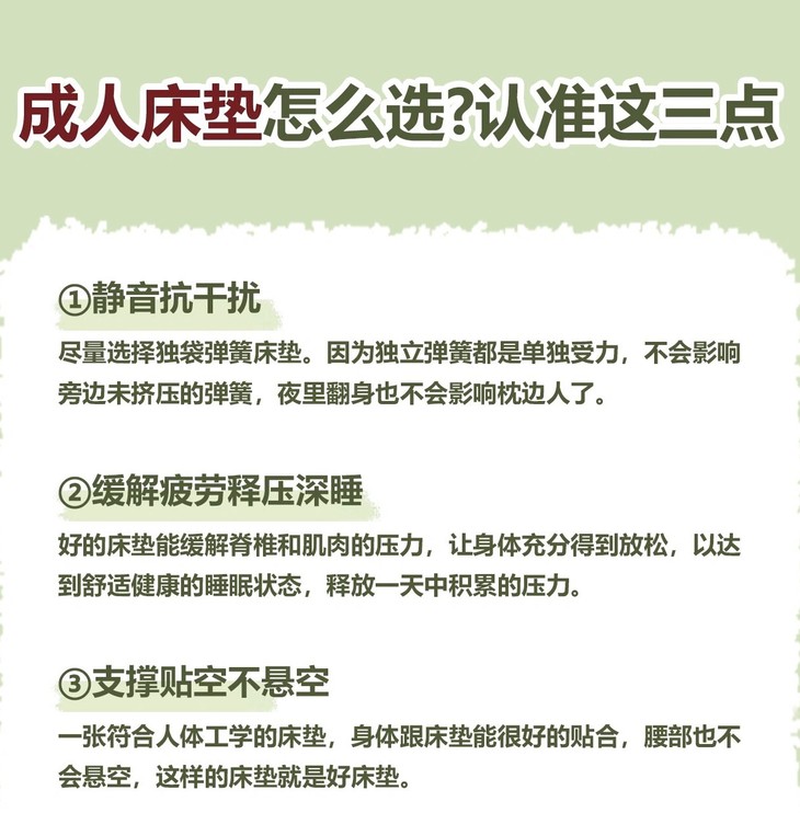 成年人工作压力大,对睡眠质量要求高,静音抗干扰的独立袋弹簧更舒适🔇。