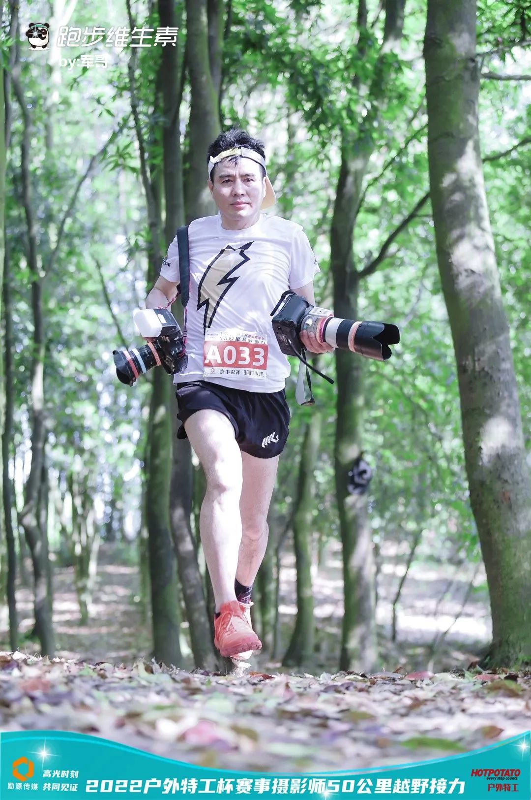 若你见过他们在选手奔跑冲刺、在千米高山越野时的跟拍,就会知道扛起手中的“武器”,他们是优秀的摄影师,但放下相机,换上装备,他们又是一名专业跑者。