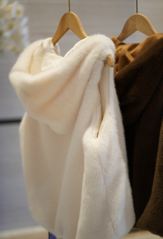 今天我们就为各位带来两款欧貂绒时尚单品,一件是特别百搭精致的连帽欧貂绒马甲,另外一件是优雅高贵的短款外套,百元出头可入,上身贵气十足。