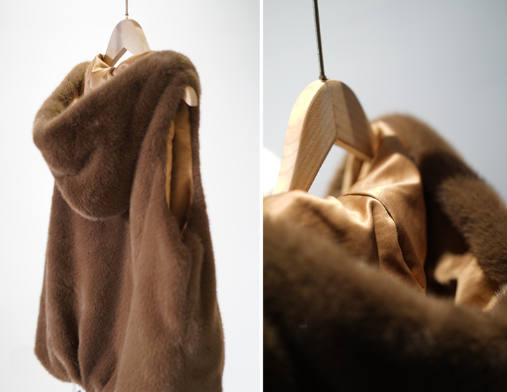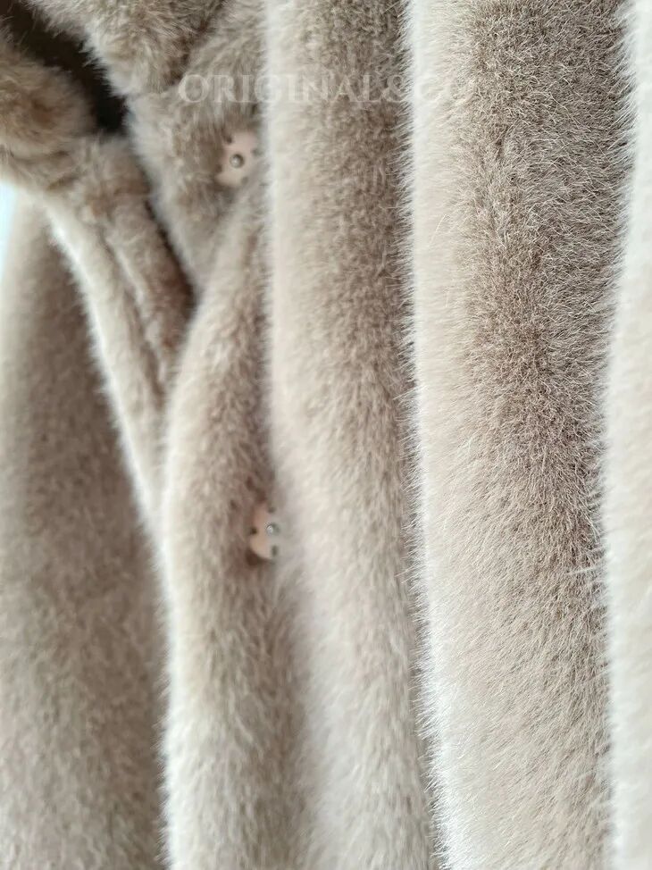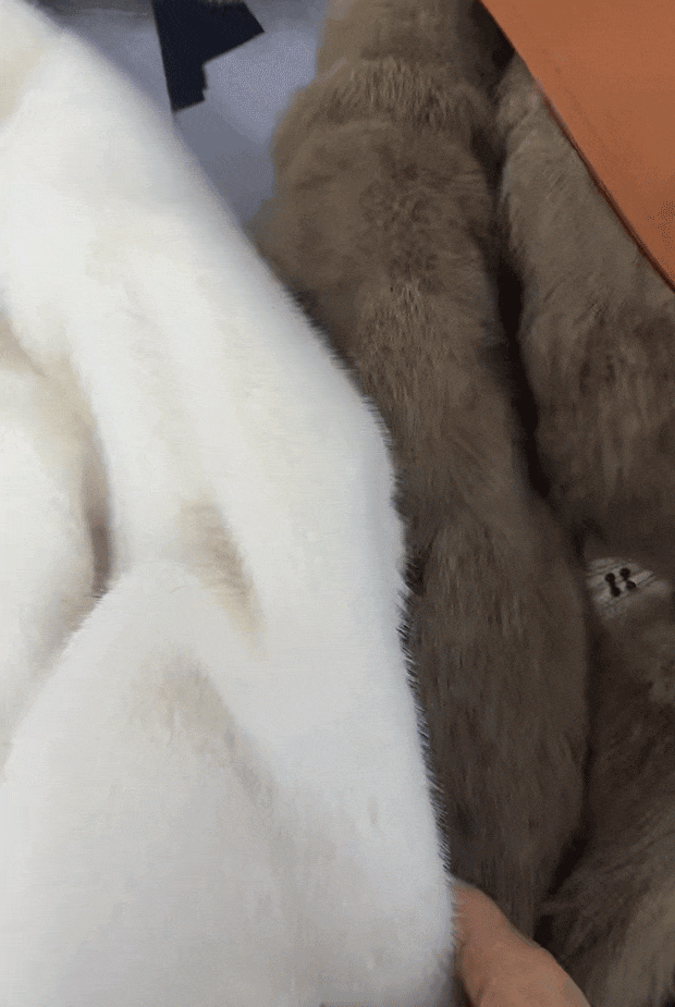 我们甚至拿一件真皮草和它做对比,质感、光泽度,一点都不输真皮草!