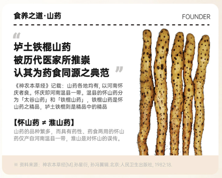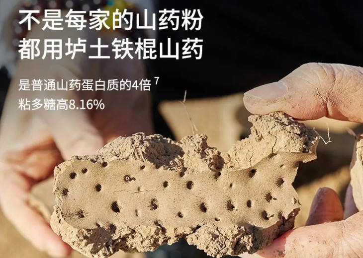 基于新鲜铁棍山药这些食用上的局限性,于是怀府街传承3000余年的古法麸炒工艺带皮炮制,做到了全食物全营养,尽可能地保留铁棍山药中珍贵的黏液蛋白。