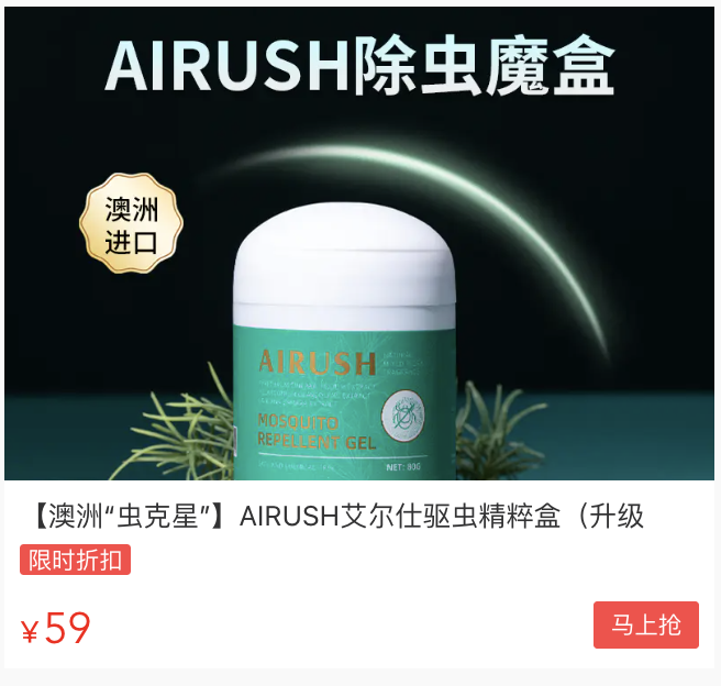 去年夏天美国蚊子特别多,儿子被咬惨了,澳洲朋友寄了几盒AIRUSH。放在卧室当天就灭了十几只蚊子!今年还会再用!