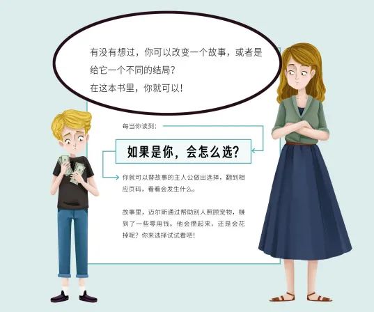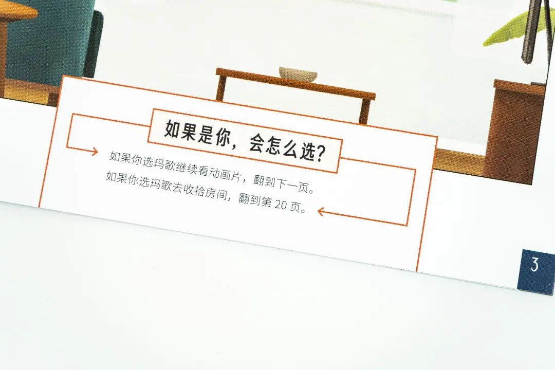 充满不确定性的选择不仅让孩子好奇接下来的故事,提高阅读的积极性、让孩子全身心地投入到故事中去。同时,无法预测选择结局的故事,模拟不可逆向的现实生活,不仅吸引孩子想知道选择的结果,更潜移默化告诉孩子,每个决定都要思考。