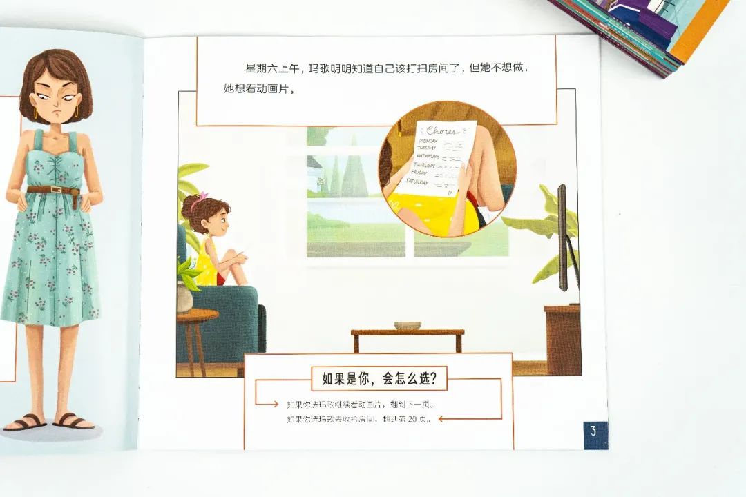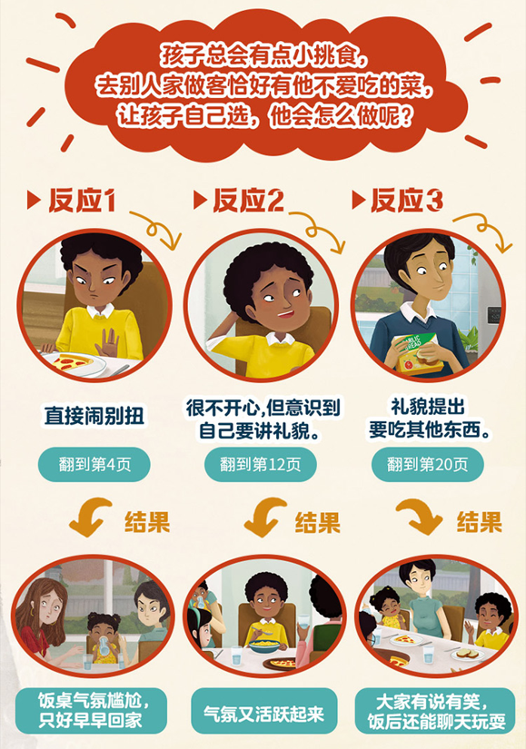 在这套书中,每个教养问题都有3种核心选择,每个选择下都对应不同的结果。整套书可组成36种不同故事结局。