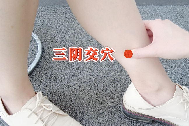 三阴交,指足部的肝、脾、肾三条阴经气血交会于此,故名三阴交穴,位于内踝尖上直上3吋,4横指处,按压有一骨为胫骨,三阴交就位于胫骨后缘靠近骨边凹陷处。