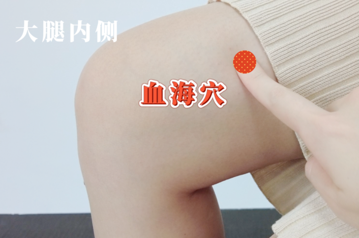 血海,是足太阴脾经,为脾经所生之血的聚集之处,屈膝在大腿内侧,髌底内侧端上2寸,当股四头肌内侧头的隆起处。