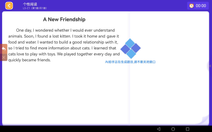 文语小状元AI智能学习机新增了【AI英语分级阅读理解】功能,根据学生的英语水平匹配相适应难度的英语阅读理解题目,更有学情分析、单词回顾、题目讲解,覆盖小学、初中、高中三个学段,轻松提升单词储备量和阅读技能。