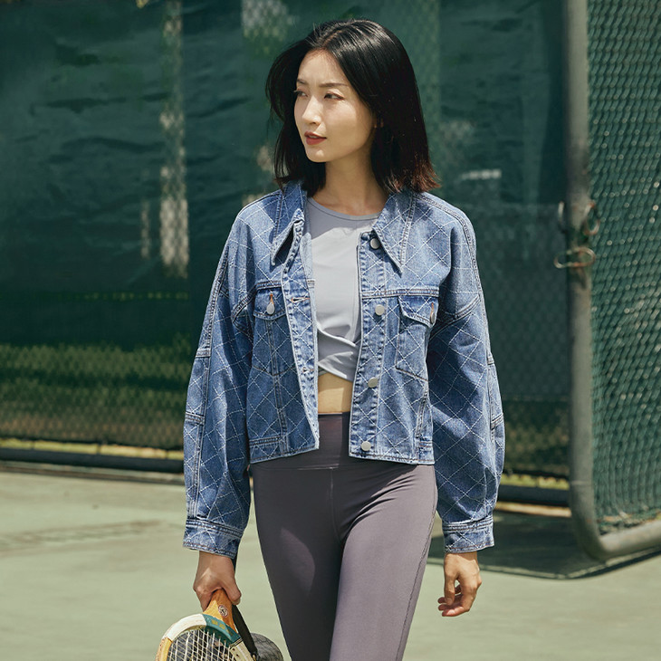 质感牛仔碰撞菱格纹挑花
