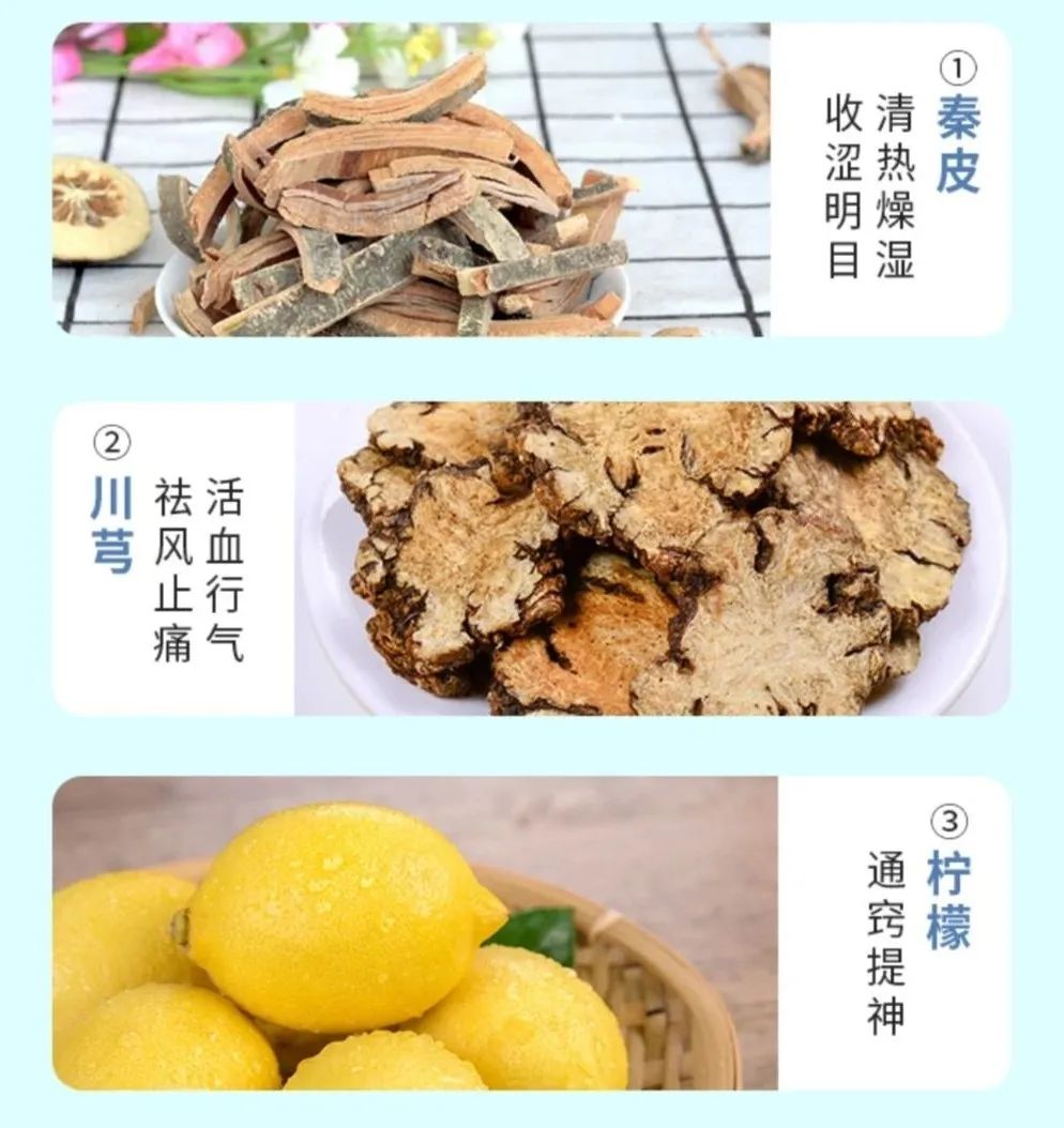 精选出秦皮、川芎、柠檬三种最有效成分。