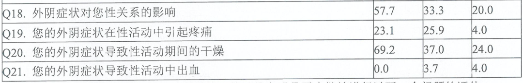 两个月的射频仪干预对于性生活引起的不适,同样有很好的效果。这些结果显示了阴道症状的存在量与干预前相比,都有显著下降,表明干预和维持期后阴道症状都得到了明显的改善。