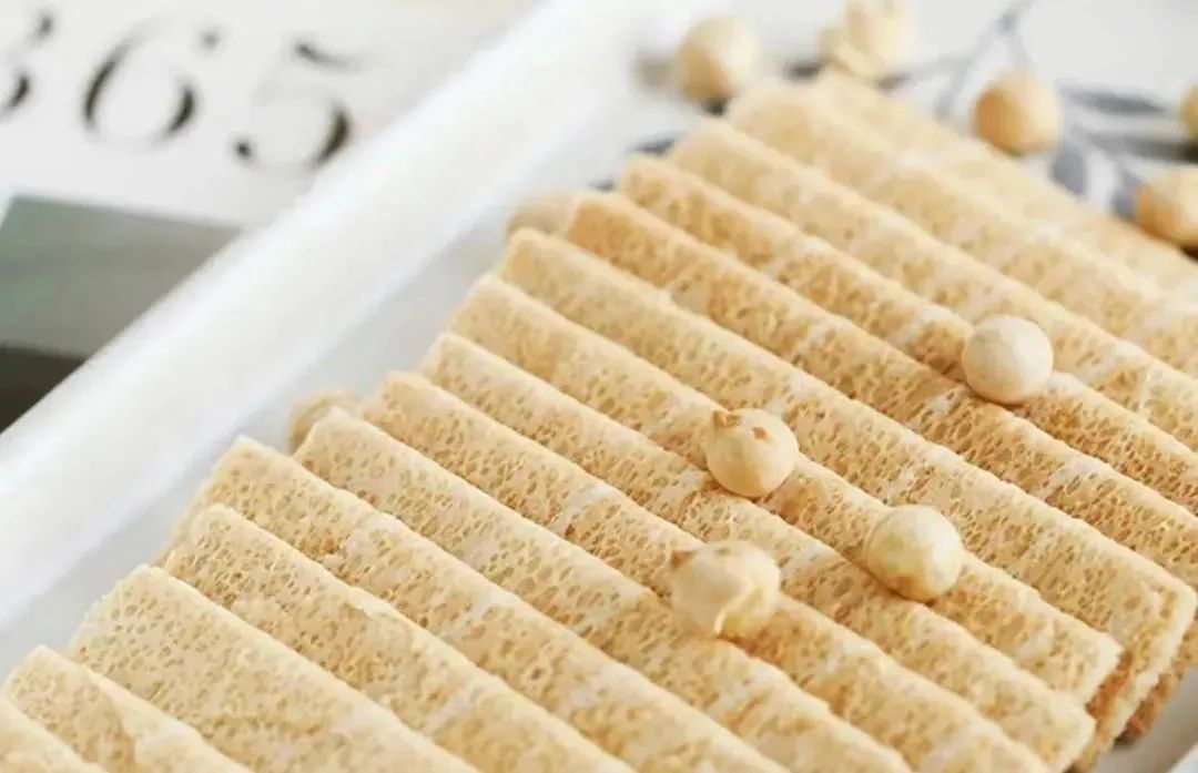 鹰嘴豆椰子脆的生产工艺源自于印尼特色薄饼的层层卷叠工艺,这样生产出来的鹰嘴豆椰子脆薄而浓香,脆而酥爽,好吃易消化。