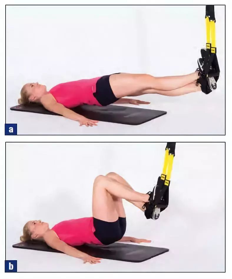 伸展双腿,抬起臀部,缓慢地屈曲髋部和膝盖,脚跟拉向臀部方向。