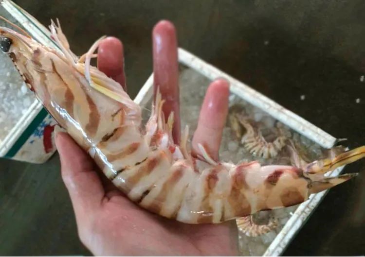 由于采取人工捕捞,每次的打捞的野生斑节虾数量都极其有限,上船后就会快速放入零下60℃超低温保存,保持每只虾都可以生猛的进入休眠保鲜状态。然后工人会按照斑节虾的色泽、品相、重量、大小、鲜度,进行人工严格筛选,筛选分拣后,再统一进行急速锁鲜。