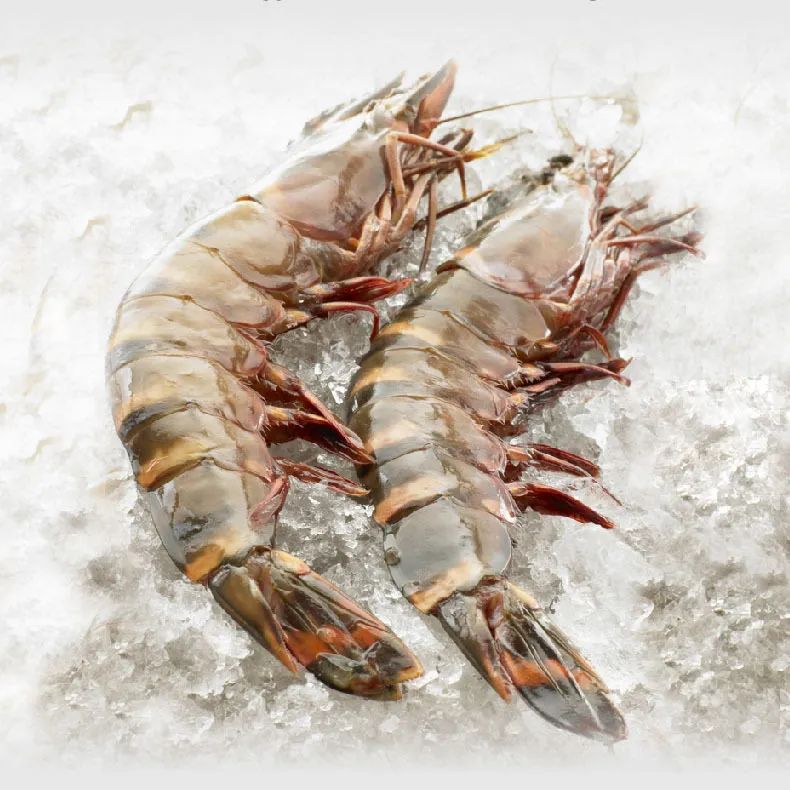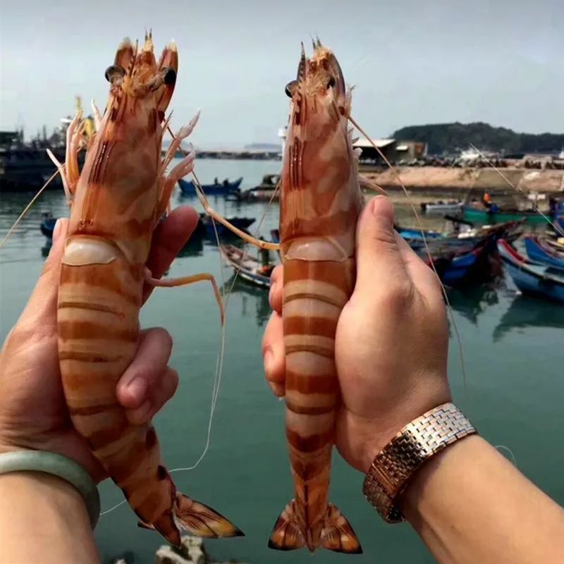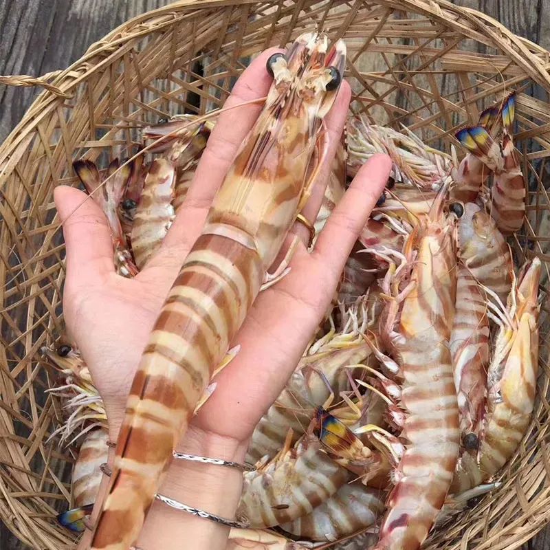 它有一颗大头,身着红白褐相间的条纹衣裳,披着蓝黄过渡渐变的美尾,穿着无数只红鞋子,它是那片海中最靓的仔。它体型硕大,傲视群虾,身长约在15-30多cm之间,重达120-350g/只。它有着粗壮的身躯,细嫩Q弹的肉质,膏体浓郁甘甜,一口下去,都忘了该怎么形容它的美味。