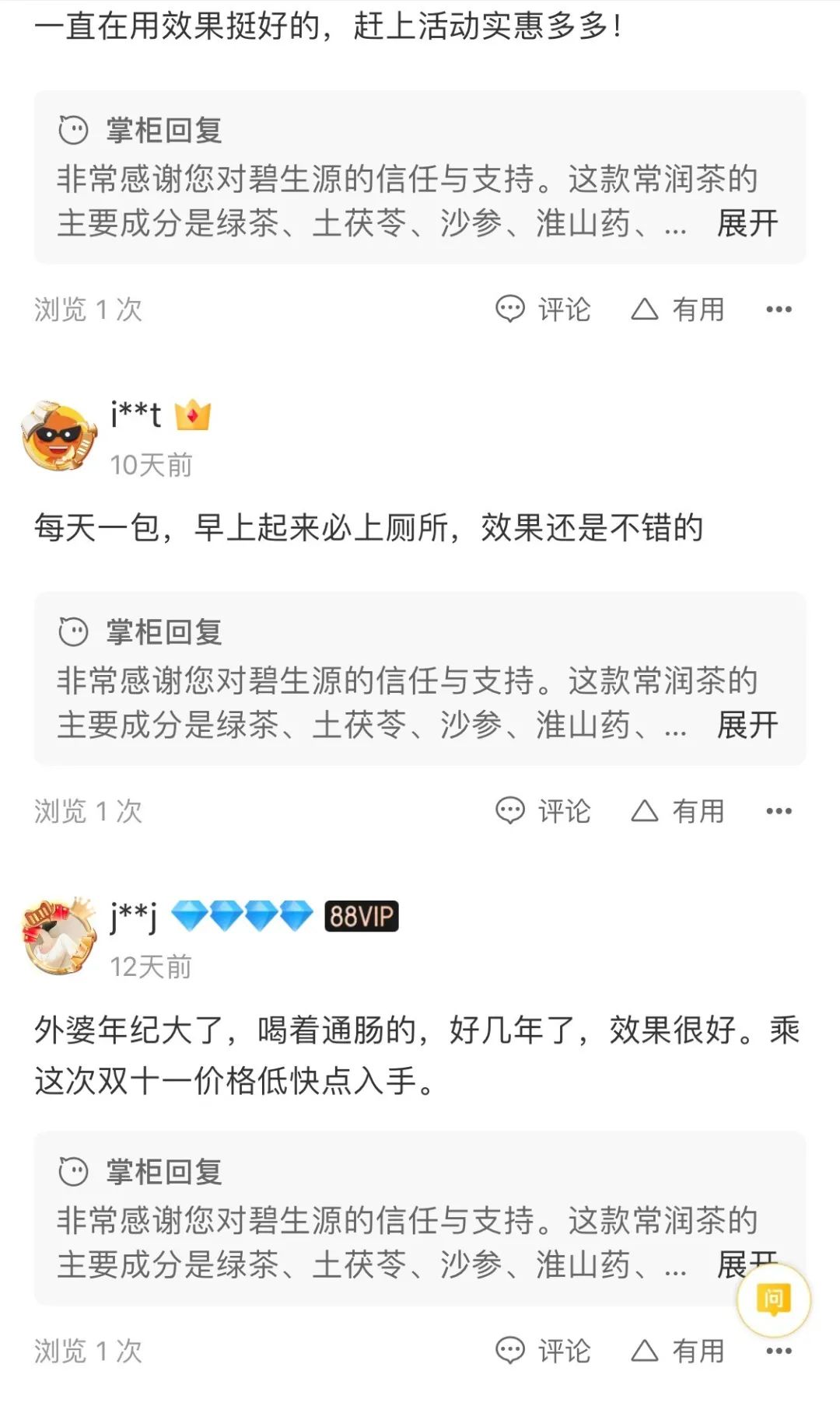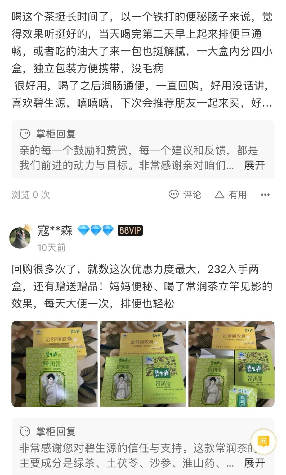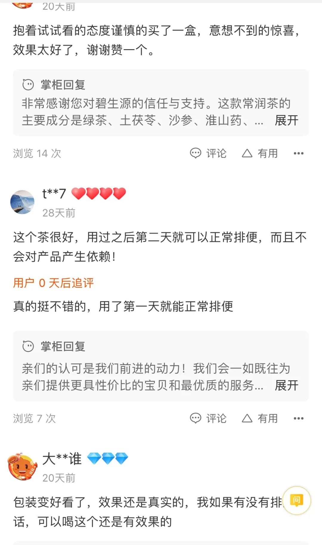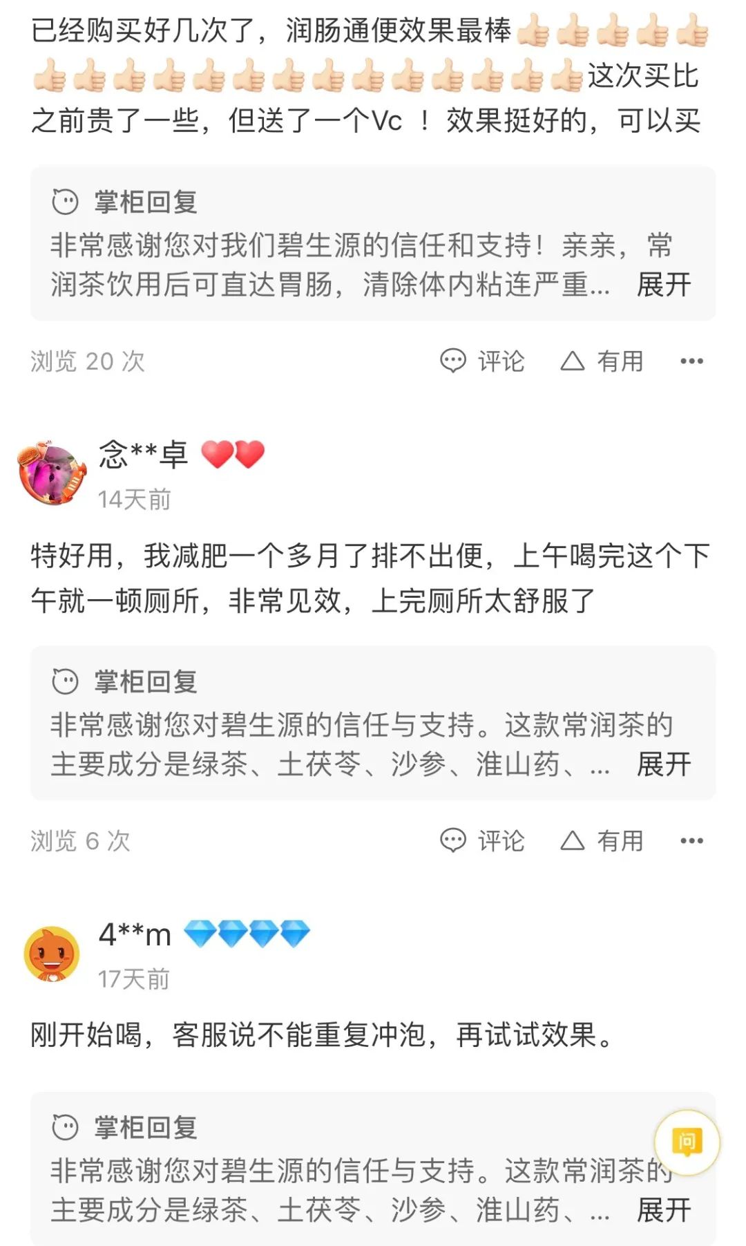当然,对于很多便秘患者而言,可能更关心的是排便效果,而我们的常润茶之所以能够在众多减肥茶饮中,坚持20年深受好评,也是因为它的服用效果好,一般患者服用4-6小时后就能有便意,所以建议大家下午服用,一般晚上就能有排便感。