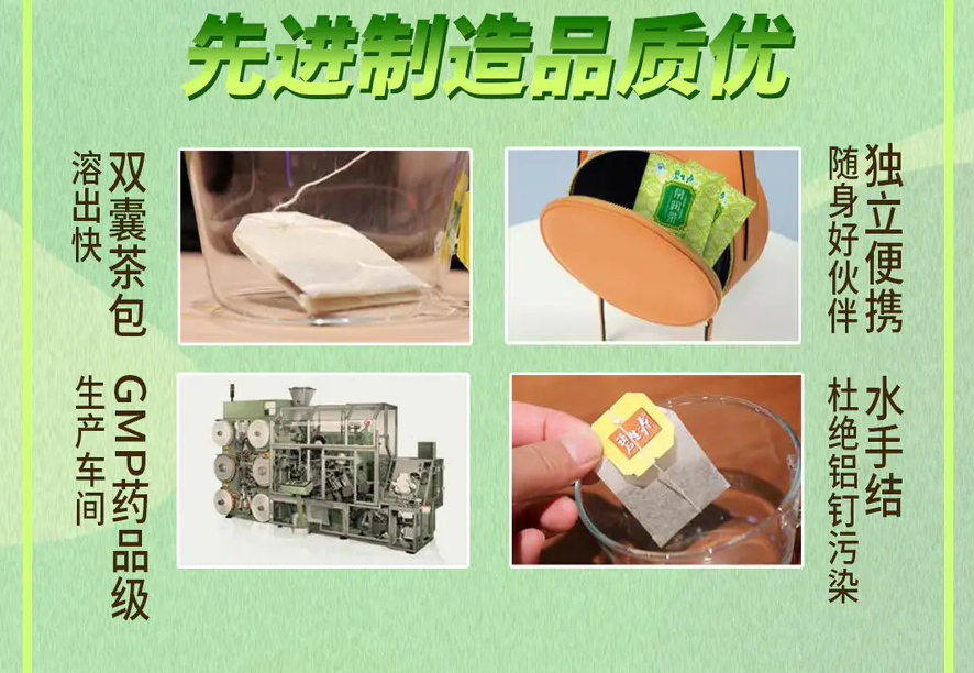 常润茶以传统中医理论"以润为通,通补结合"为基础,采用双囊工艺,更易冲泡,溶出快,茶袋与棉线的连接处无铝钉,既安全又环保的包装方式,食用方便,清香茶味,老少皆宜。