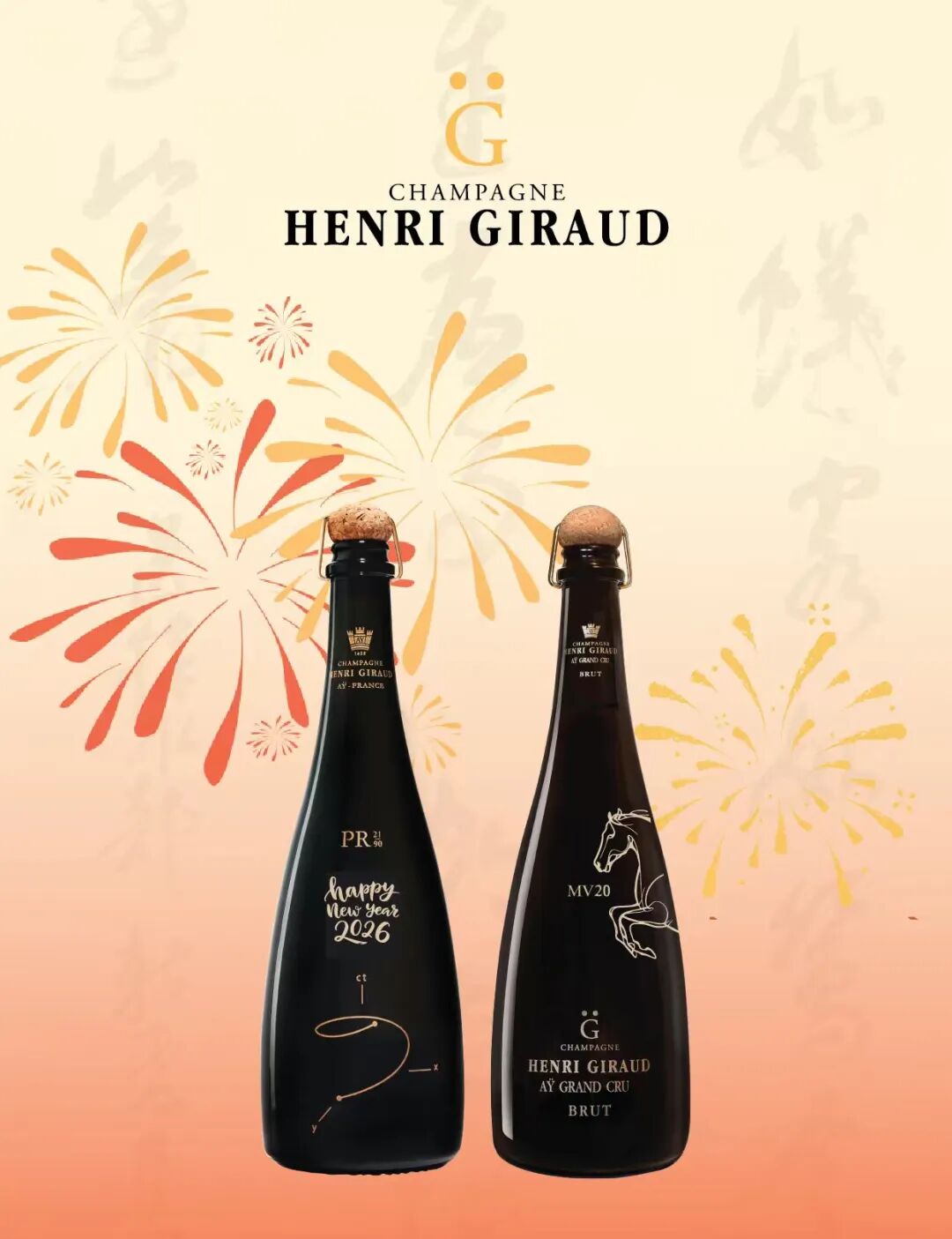 即将到来的 2026 农历马年新春,Henri Giraud 旗下标志性的 MV 系列与酒款,可尊享限时免费个性化刻字服务。您不仅可将生肖马专属艺术图案,更能将任意对您有意义的主题标识,永久镌刻于瓶身,让每一瓶亨利吉罗都成为承载荣耀、独一无二的传世珍礼。