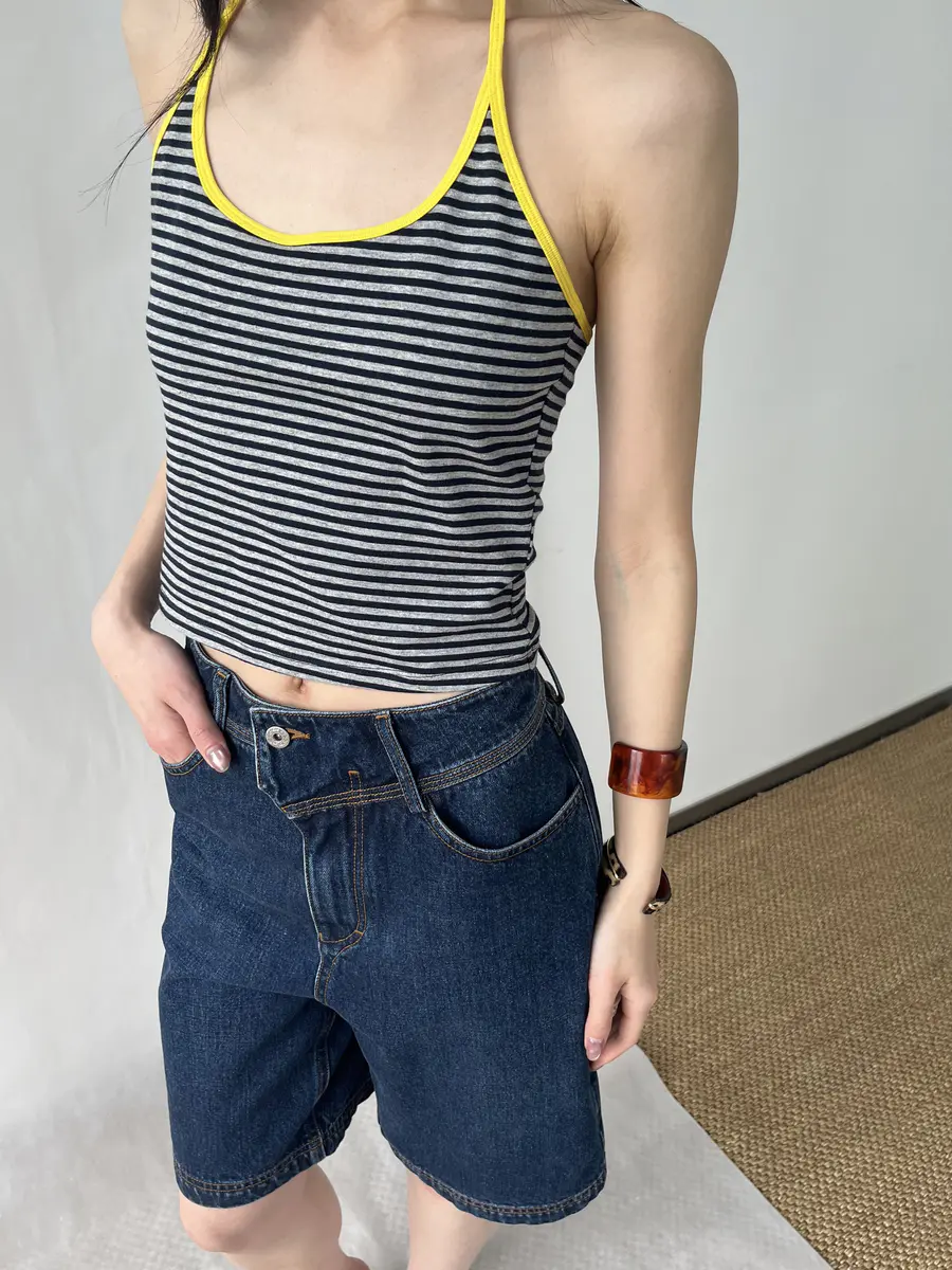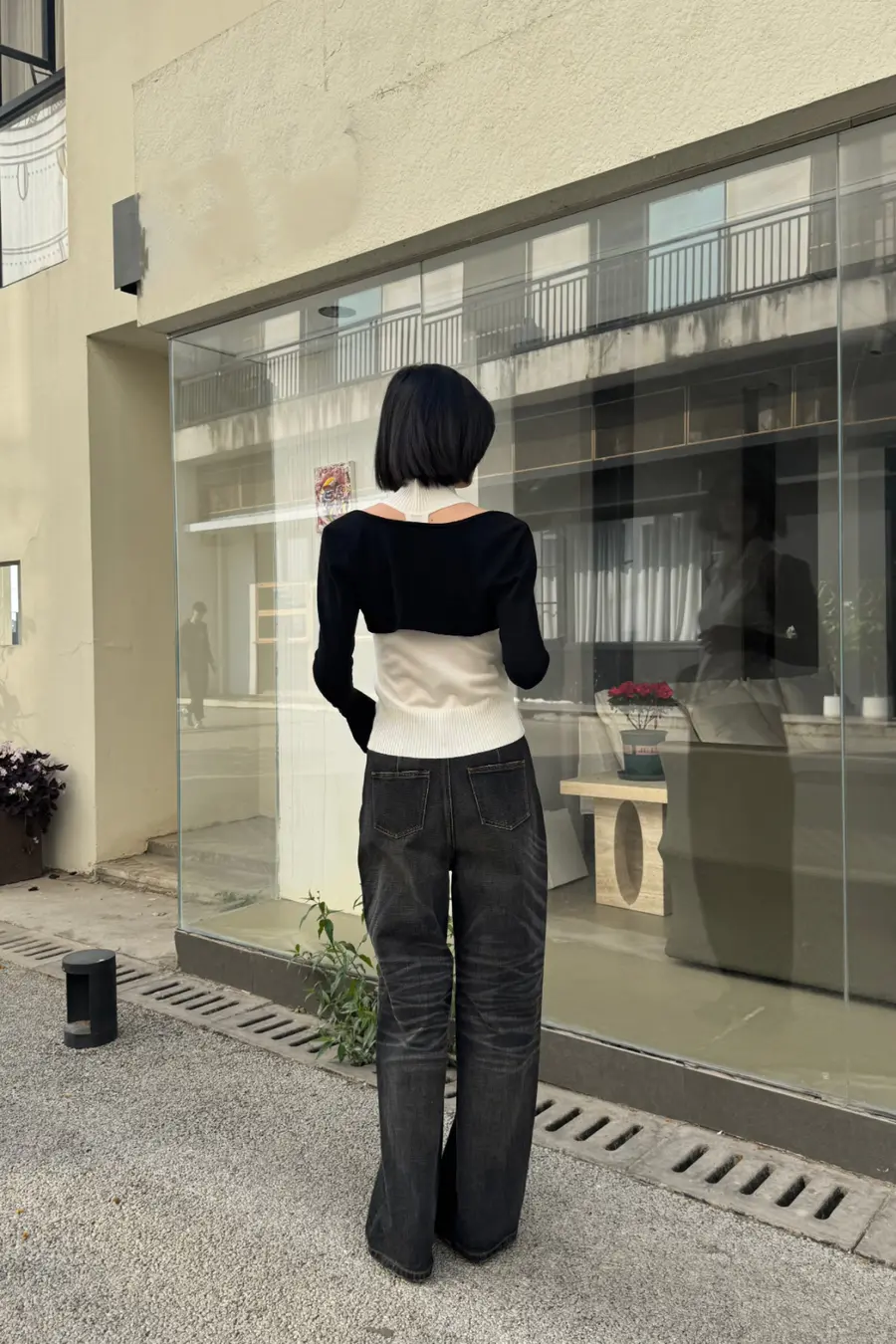 “NUTH”丨水洗撞色线微弹九分牛仔裤