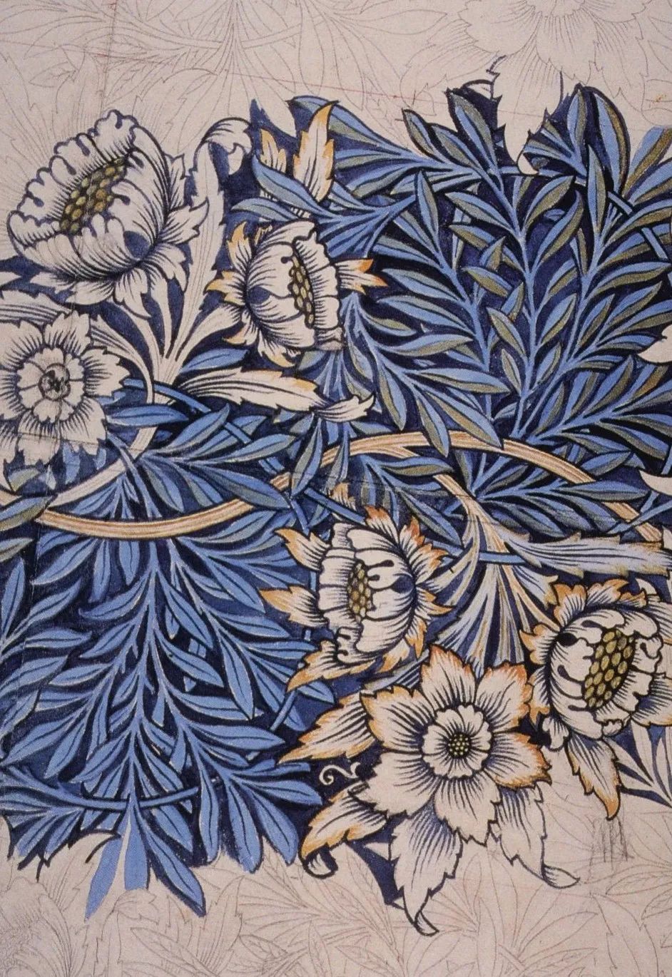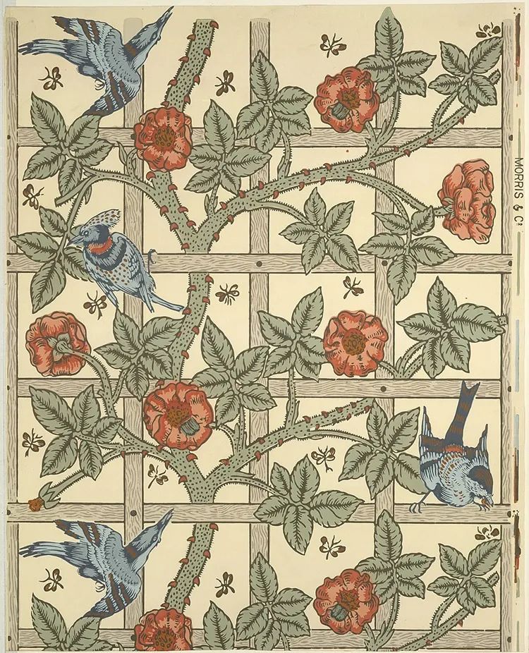 都说时势造英雄,不假。Morris&Co.之所以能成为一个时代的烙印,多多少少得益于19世纪中后期在英国兴起的工艺美术运动。那场运动中,艺术家们开始反思工业化对设计以及生活方式的影响,一众设计师、建筑师、画家、手工艺人探索新兴技术、传统工艺之间的关系,并开创了装饰艺术的新方法。Morris&Co.就是个中翘楚。它致力于从生活角度出发,设计、生产美丽的织物、墙纸,在英国步入工业革命后,依然坚持、倡导手工制作。不夸张地说,19世纪以来,最知名、最广为流传的纺织品图案,许多都来自Morris&Co.。当下很多时候,无意中发现的美丽印花,兜兜转转之后一查资料,发现也是来自Morris&Co.!