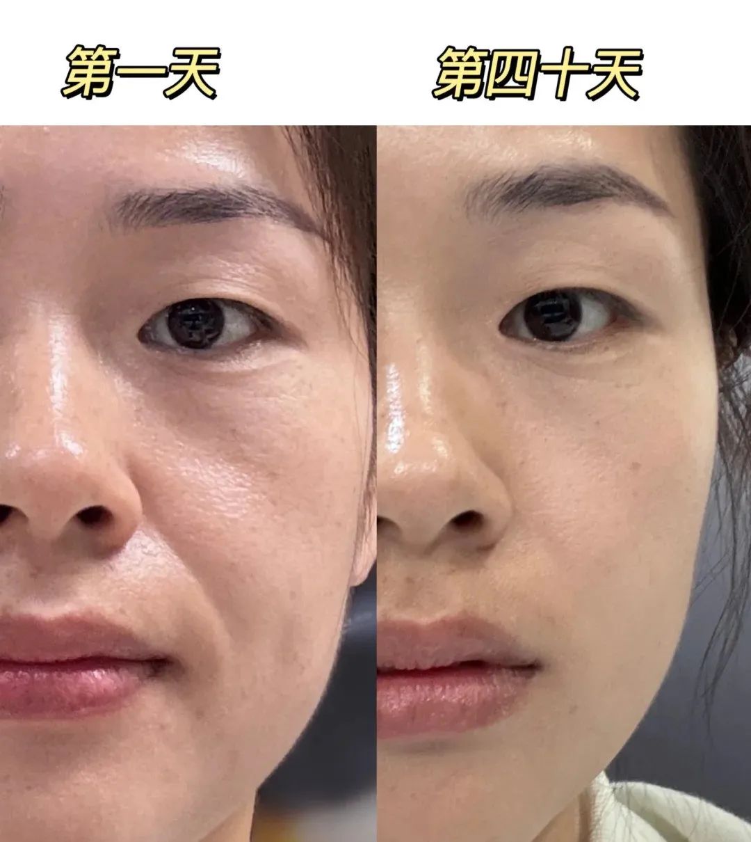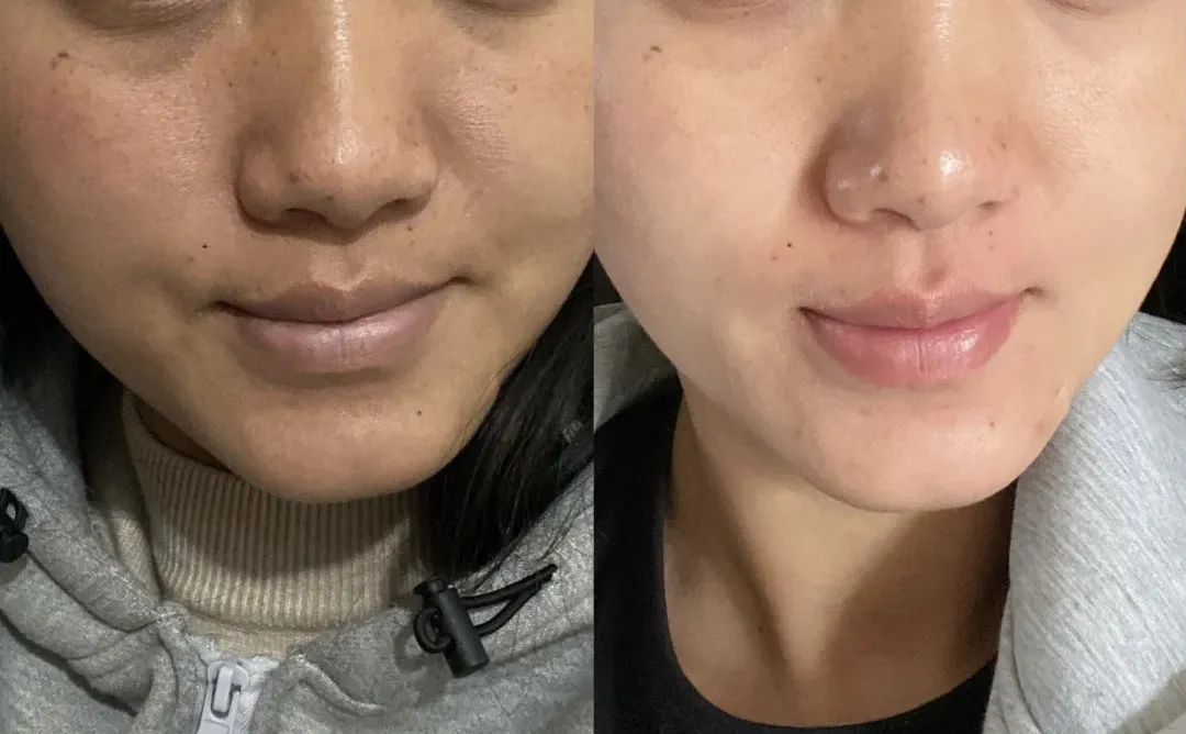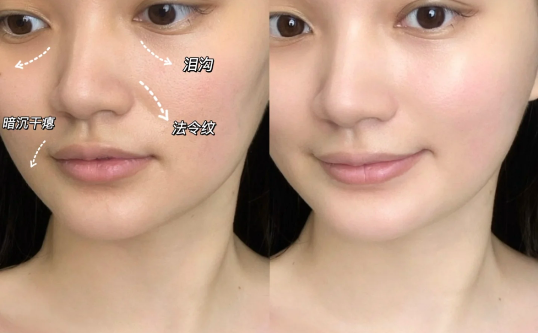 多涂一段时间,脸上重点的法令纹、木偶纹路就被推平,脸部轮廓也紧致不少。