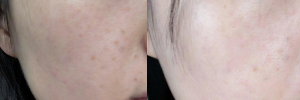 如果你坚持使用一段时间,还会发现脸上的黄气消失,万年痘印也慢慢不见。
