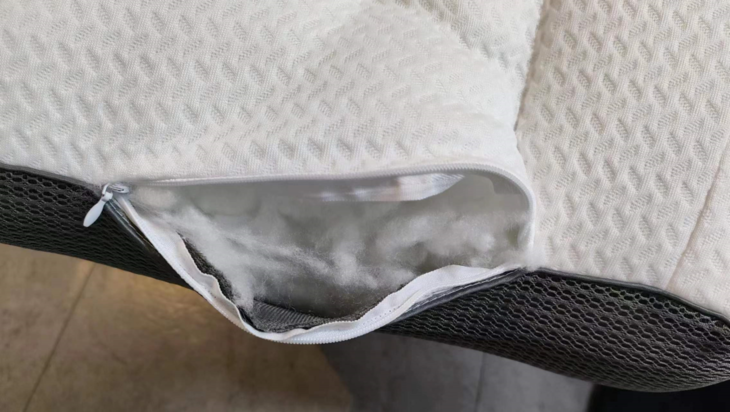 高弹的羽丝绒内里,能够很好的吸收压力,包裹头、肩、颈