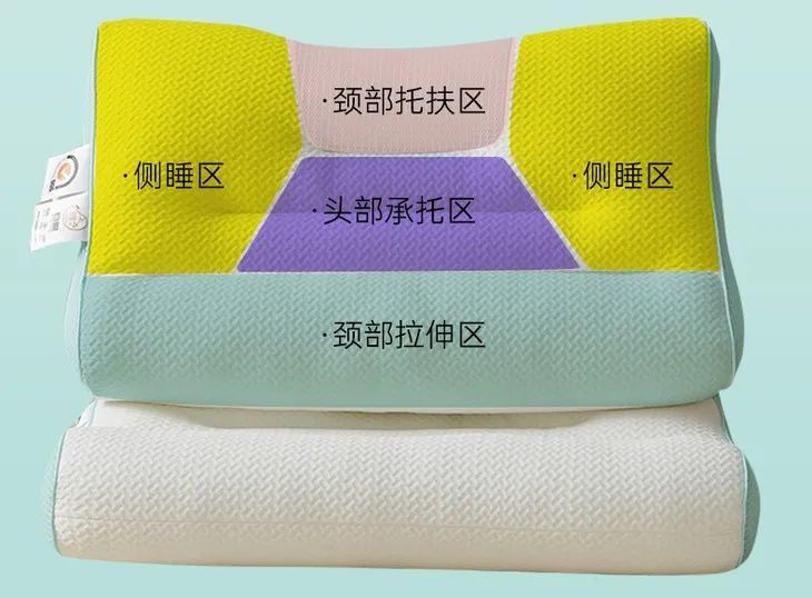 依照人体工学设计,独立分区,分为侧睡区、颈部托扶区、颈部拉伸区、脑窝区(即头部承托区)
