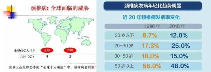 根据世卫组织的报告,全球60多亿人口中,约有9亿人有颈椎问题