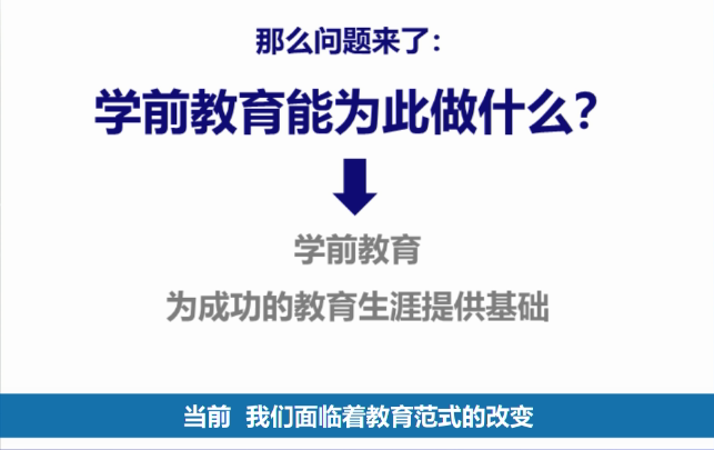各位都知道,我们的教育系统当前正在进行巨大的变革,改革后的教育系统不再仅仅聚焦于知识的传授,而是更加聚焦于强化儿童的发展和儿童的素养。而我们大家都知道,儿童的这些素养很小的时候就已经开始发展了。因此儿童早期的教育的意义和地位得到了新的评价,它为儿童的发展和成功的教育生涯奠定基础。
