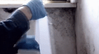 用抹布强行把霉菌抹去,墙皮都蹭掉了,还是一片乌漆墨黑。