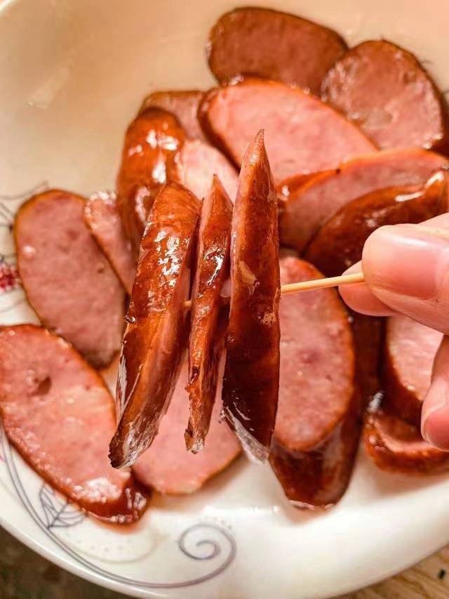 枣红色的烟熏红肠,散发着微微的蒜香