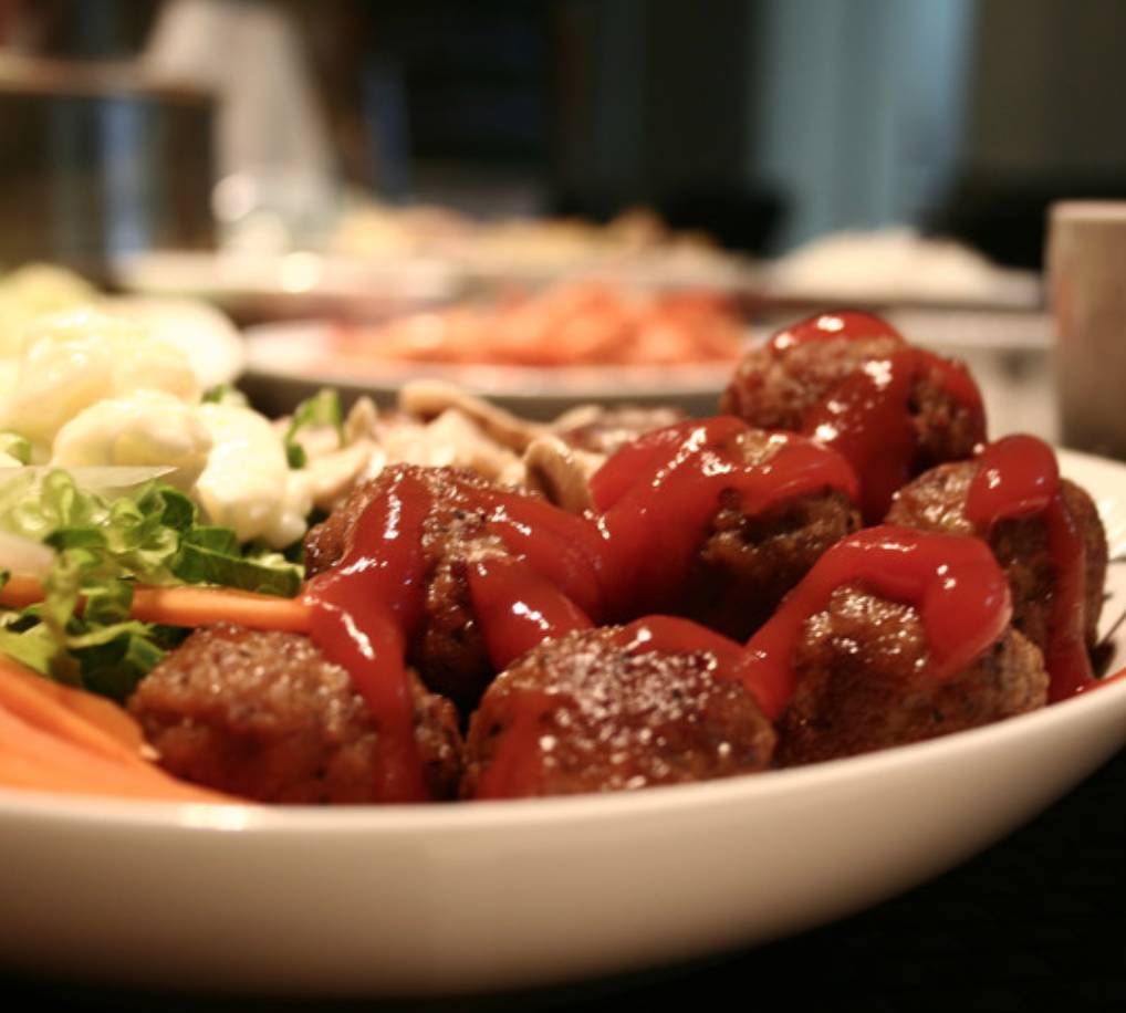 3、装盘出锅,配上番茄酱或者番茄沙司,非常美味。