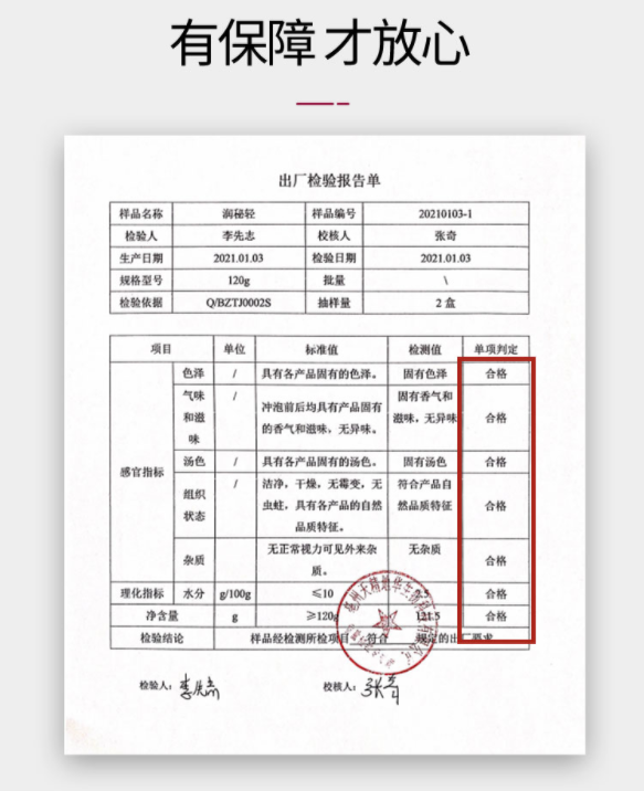 经检测品质、效果符合标准,真材实料喝的放心,才敢推荐!