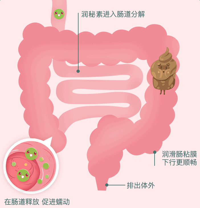 湿润肠道,促进蠕动的同时,调节肠道微环境,让粪便、垃圾,畅行无阻,排出体外,不堆积!