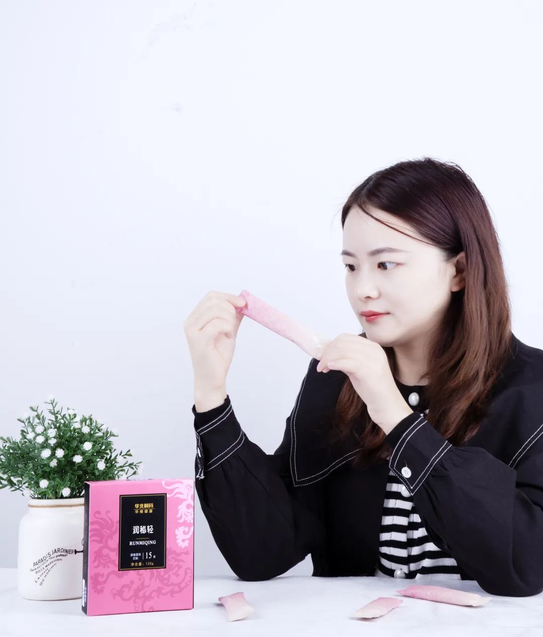 不经过漂白,原材料是什么颜色,润秘轻就是什么颜色;而市面上很多漂白过的,一点也不健康。