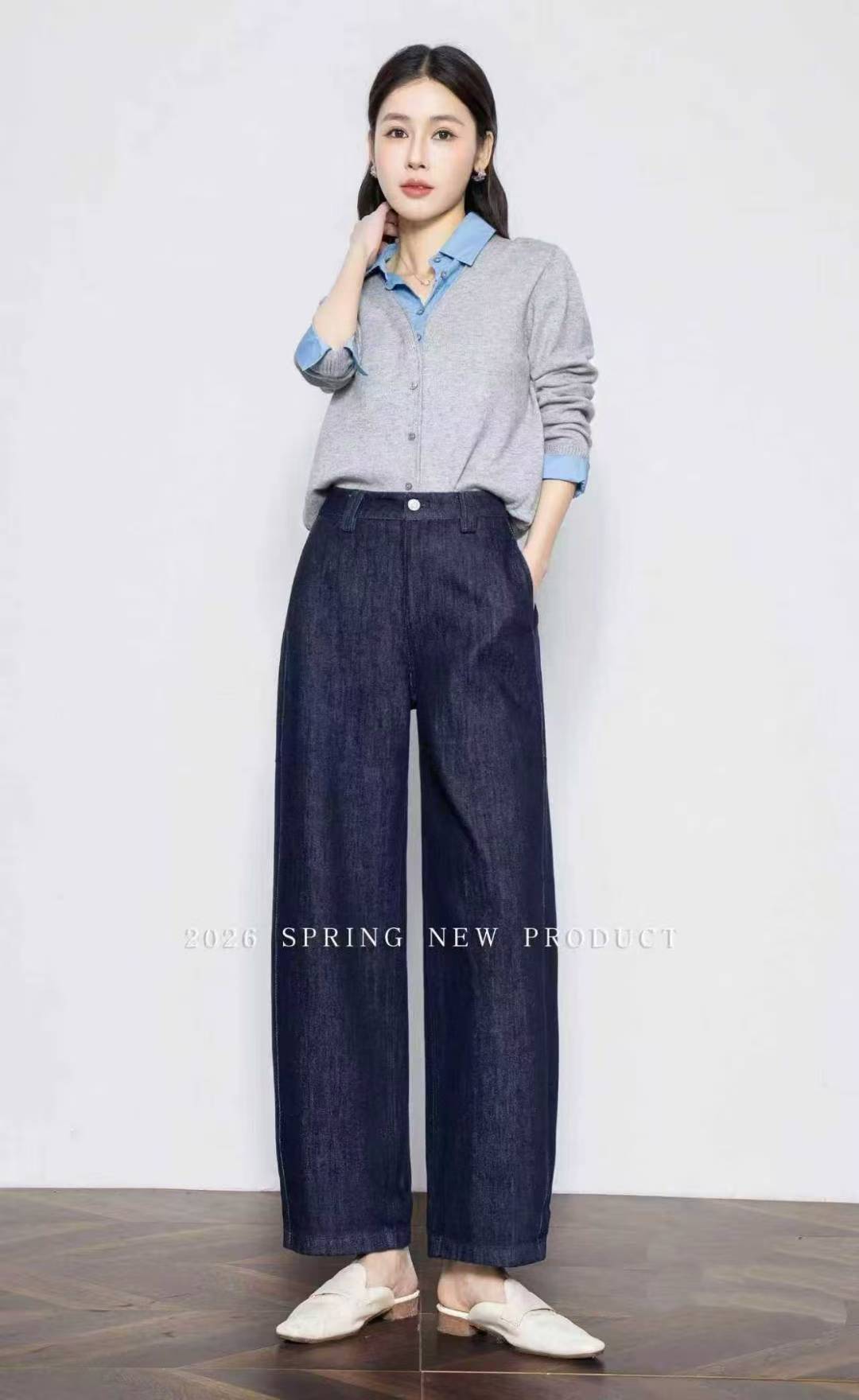 SC1L02 原洗牛仔蓝色直筒裤 颜色清冷有筋骨,不深不浅,刚好配遍衣橱所有上衣,白衬衫的干净,条纹衫的法式,甚至真丝吊带的慵懒,它都接得住。直筒裤型,笔直垂坠,视觉延伸的线条,悄悄拉长比例,翻边裤脚,细碎印花若隐若现,不经意间,泄露一点精致小心思,是给细节控的惊喜。