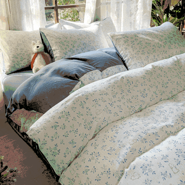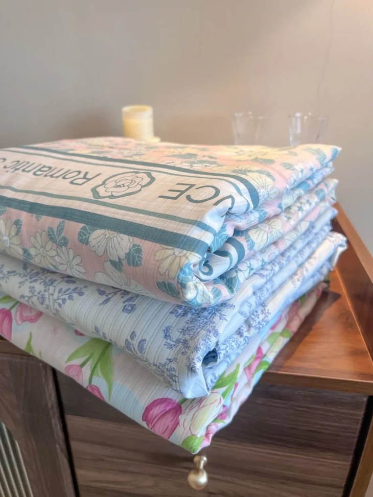 AB面设计,A面是优雅简约的花朵、爱心、条纹、小动物等可爱图案,B面是与之颜色搭配的纯色设计,属于卧室百搭款,怎么盖都好看。