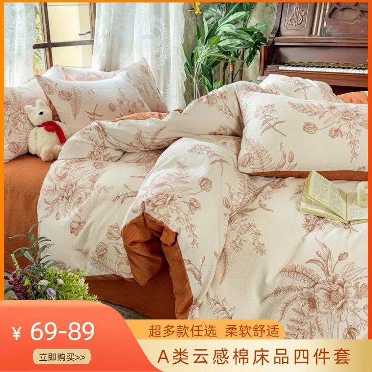 这款床品本来是准备出口国外的,跟源头工厂磨了很久,才同意成本价给我们一批尾货,最低只要69元起!