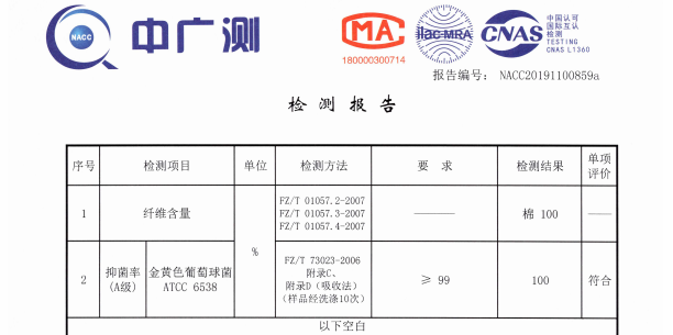 符合抗菌A级要求,抑菌率100%!