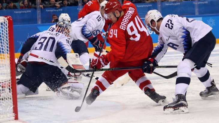 △俄美冰球大赛,中场休息时放《喀秋莎》