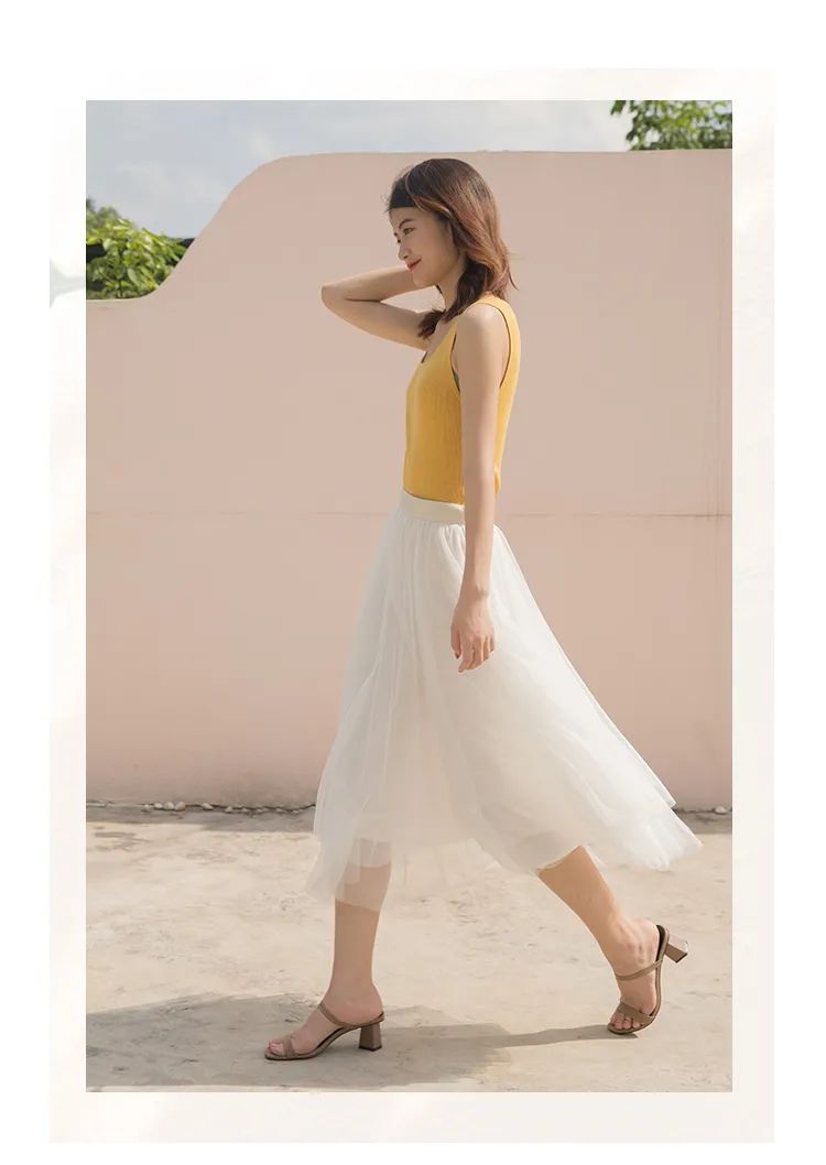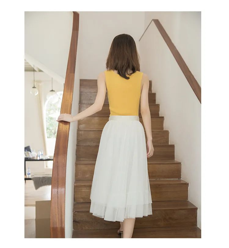 和纱裙最配的单品之一,莫过于「工字背心」了。