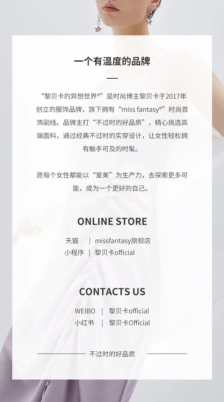 配合miss fantasy精心选用的好质感面料和剪裁,