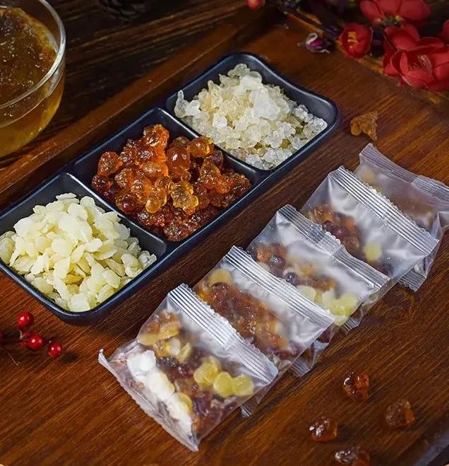 它是由老树桃胶、云南雪燕、贵州皂角米,三种上品食材组成,经科学配比组合成袋,比我们自己搭配的比例更好。