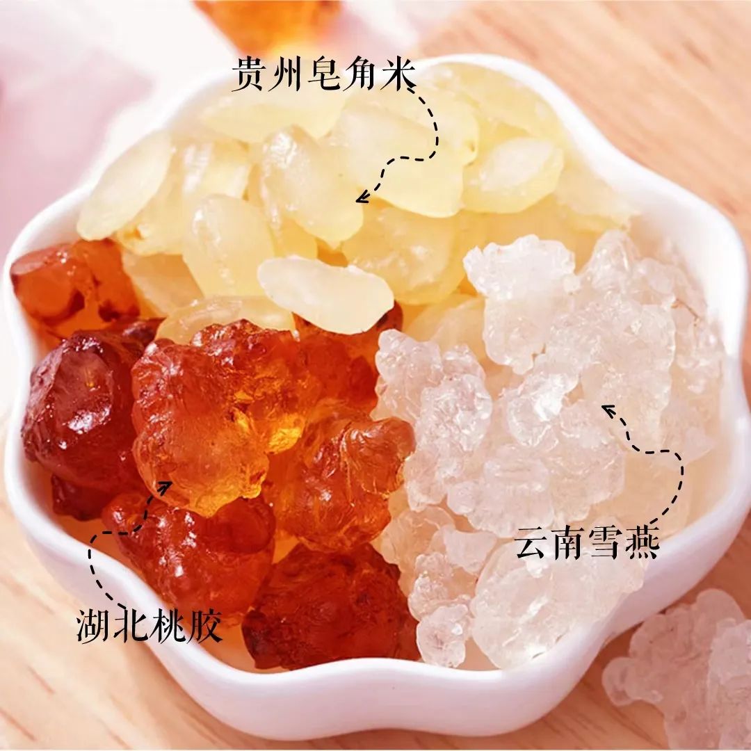 添加了云南雪燕、贵州皂角米、湖北桃胶,三种上好食材!